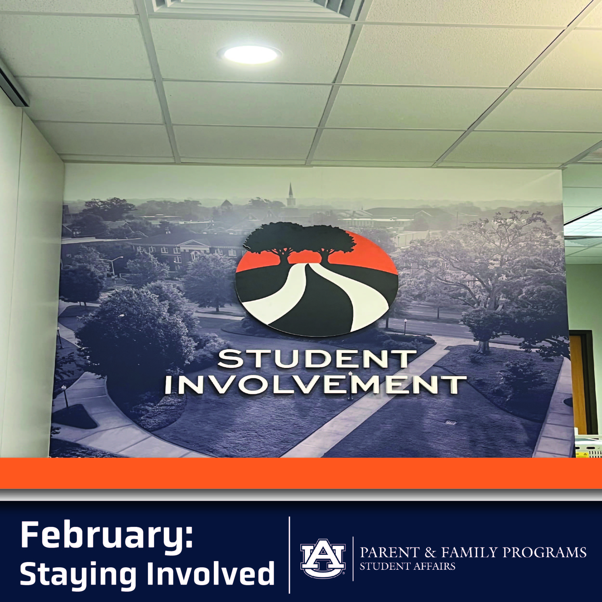 Our focus in February is focusing on making sure you know how to support your student in staying involved on campus. One of the most consistent indicators of a student’s success is their involvement on campus. Auburn University has the Student Involvement unit to help your student find their place on campus. With over 500 different student organizations, there is probably a club for every student, but if not, they can also help your student go through the process of creating their own organization. The Student Involvement Suite is located on the third floor of the Melton Student Center. Their website is http://wp.auburn.edu/involve/. Stay tuned to our social media pages and the Family Portal in February as we highlight various involvement opportunities around campus.