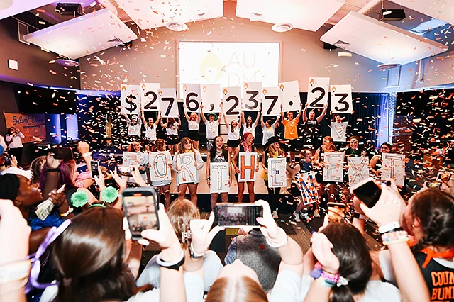 AUDM’s yearlong philanthropic campaign culminates every February with Main Event, a 12-hour fundraising push where students “stay on their feet for those who can’t.” This year’s event was held in the Melton Student Center Ballroom.